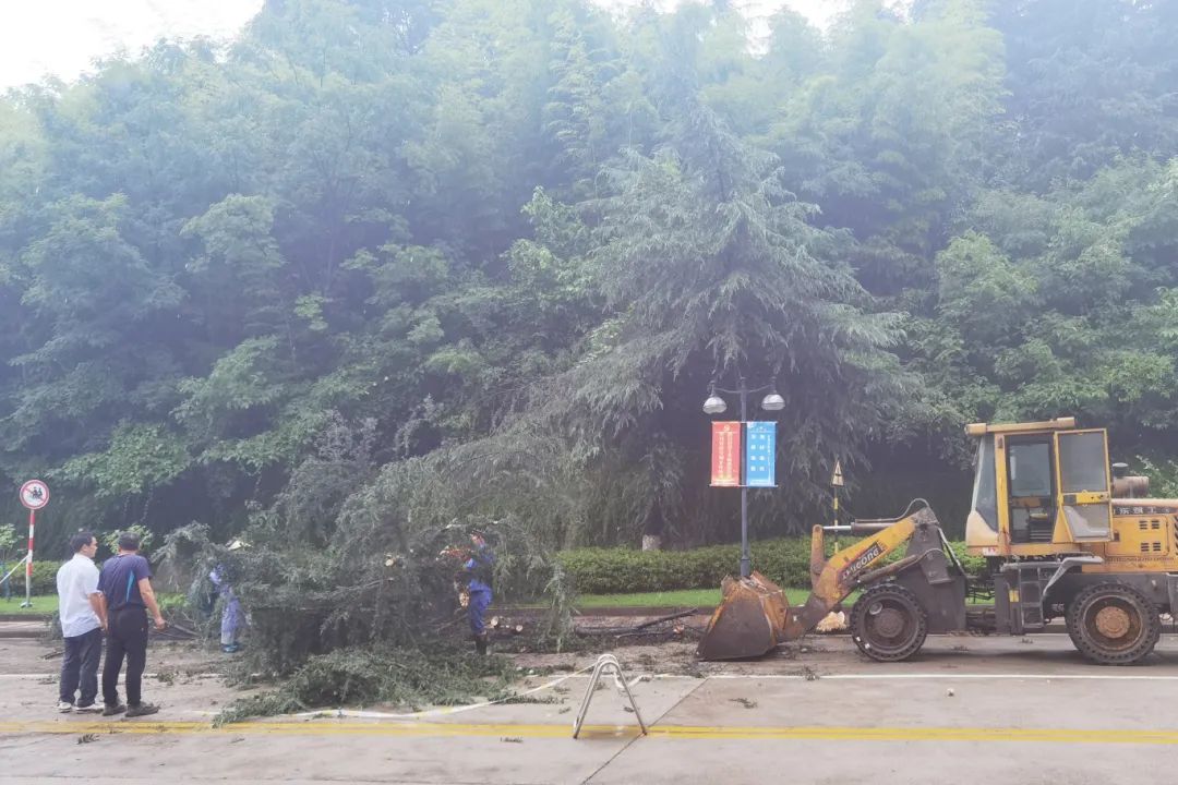 工作人員快速清理暴風(fēng)雨中倒下的樹(shù)木