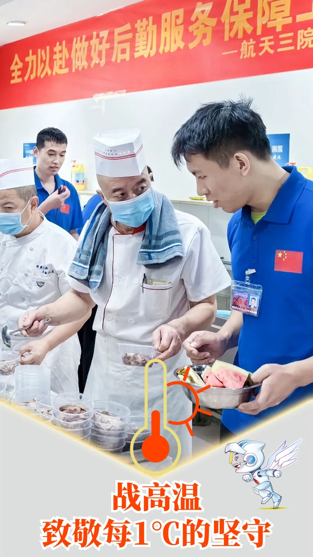 靶場保障前線的伙頭軍,每天站在高達七八十度的爐臺旁,每餐2-3個小時的堅守,常人難以承受的“烤”驗都只在那毛巾一擦后淡然的一笑。高溫下的堅守。奏響后廚鍋碟盆勺的交響曲,魔幻般地演繹出舌尖上的飛航美味。