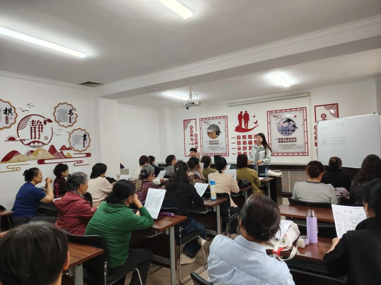 分校多次主動與總校溝通對接,科學制定改造方案,聚焦硬件提升與文化浸潤雙目標,對校內教學教室進行全面修繕,更新照明、投影等基礎設備。同時,分校以“老有所學、老有所樂”為主題,將書法、繪畫作品,勵志標語及老年教育理念融入教室文化墻設計。